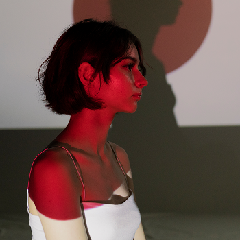 Sesión con juego de reflejos, cristales y luces artificiales suaves. Se trabaja el contraste entre sombras profundas y zonas iluminadas que recorren el cuerpo. Una narrativa visual que habla de fuerza, belleza y emociones contenidas.